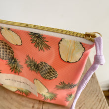 // Bolsa plastificada no interior e exterior. Fecho dourado, acabamento com fitas coloridas