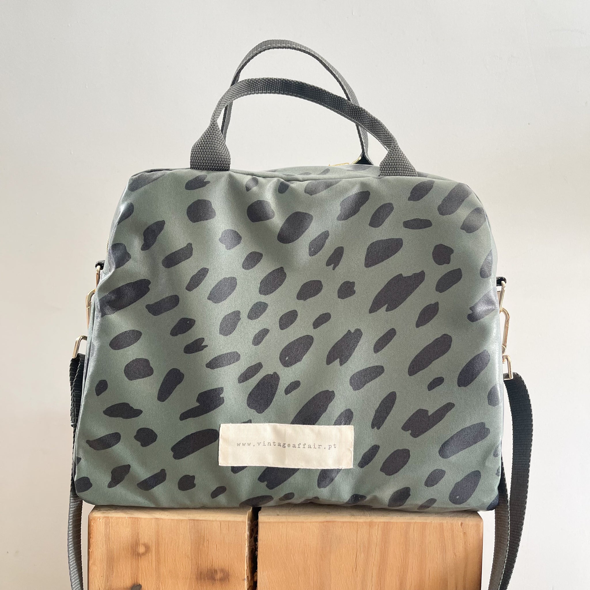 Tem duas pegas de mão e uma alça ajustável para o ombro (de tirar e pôr)