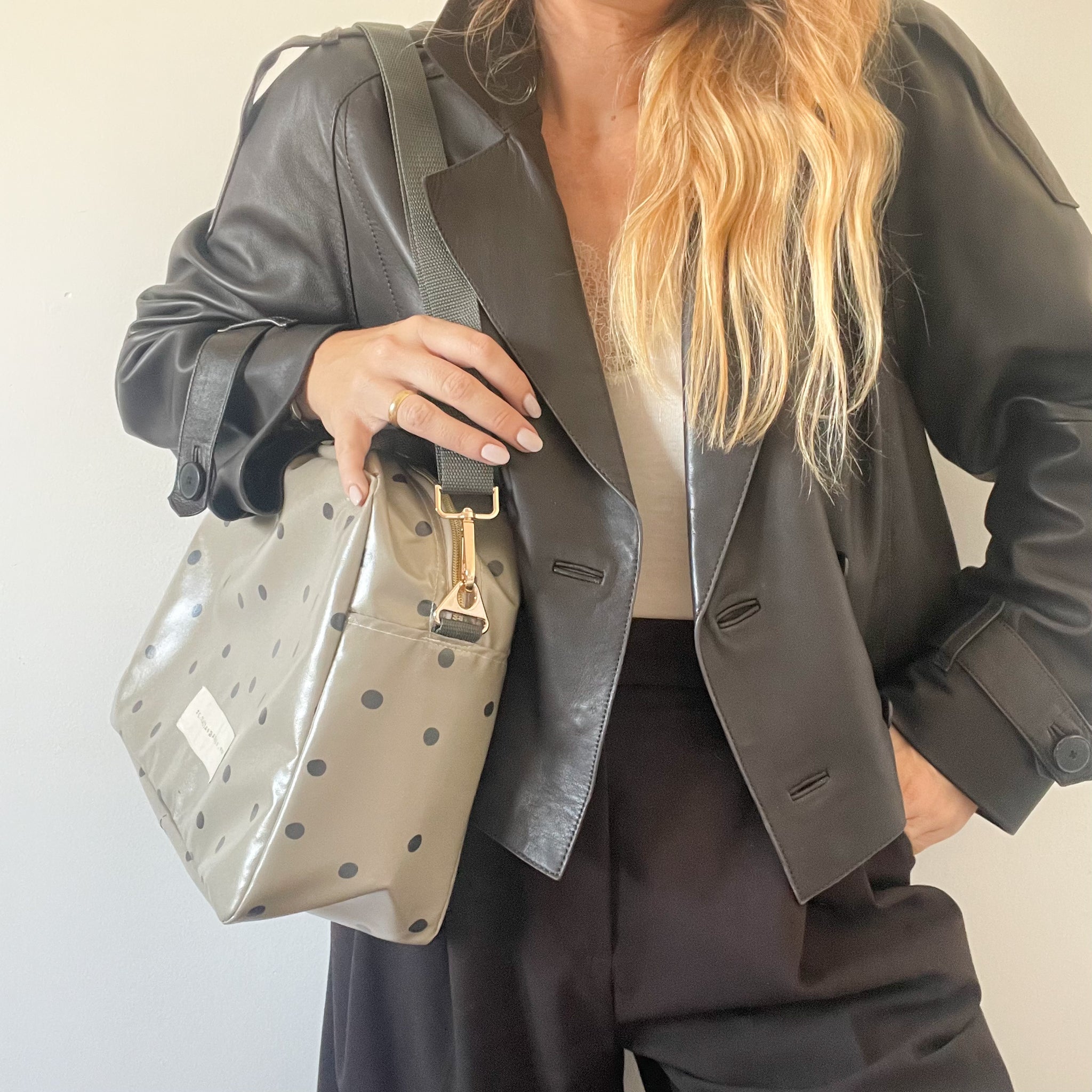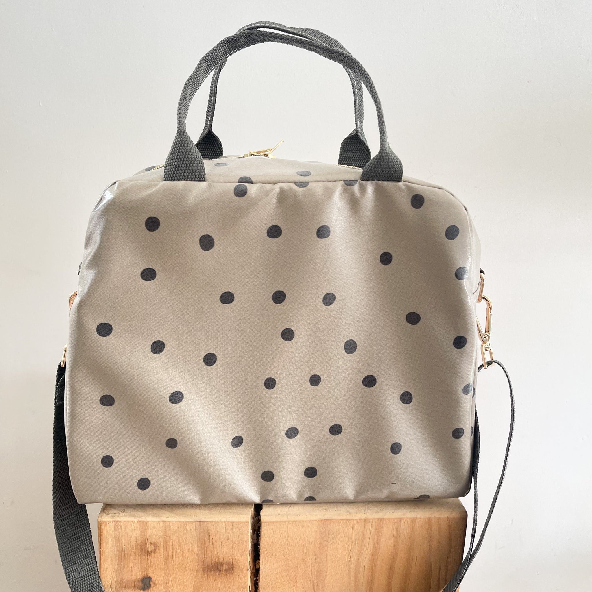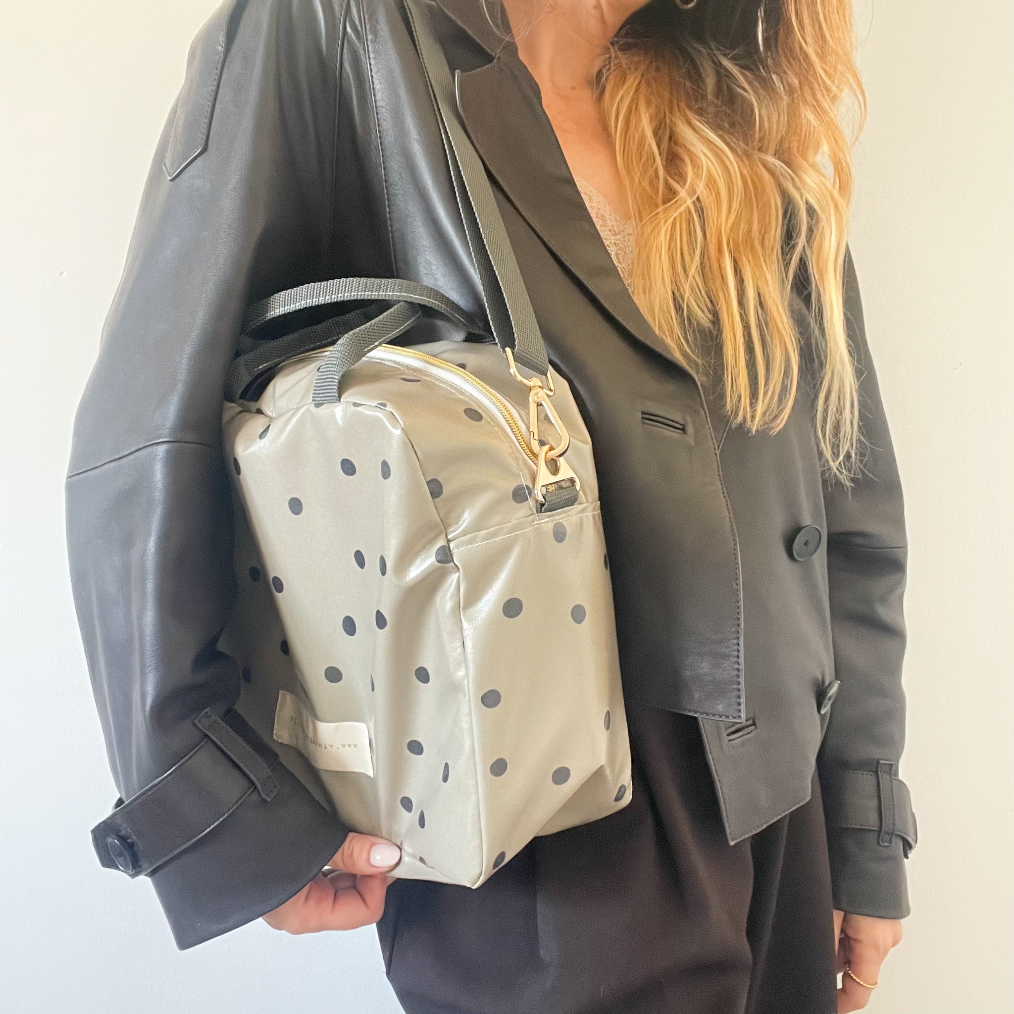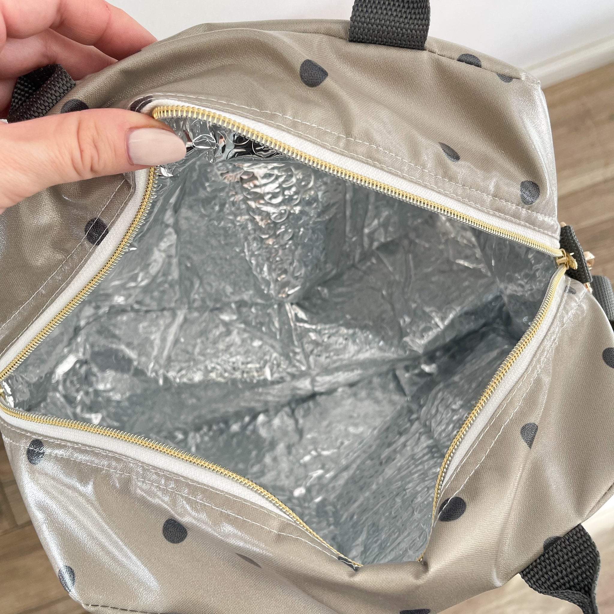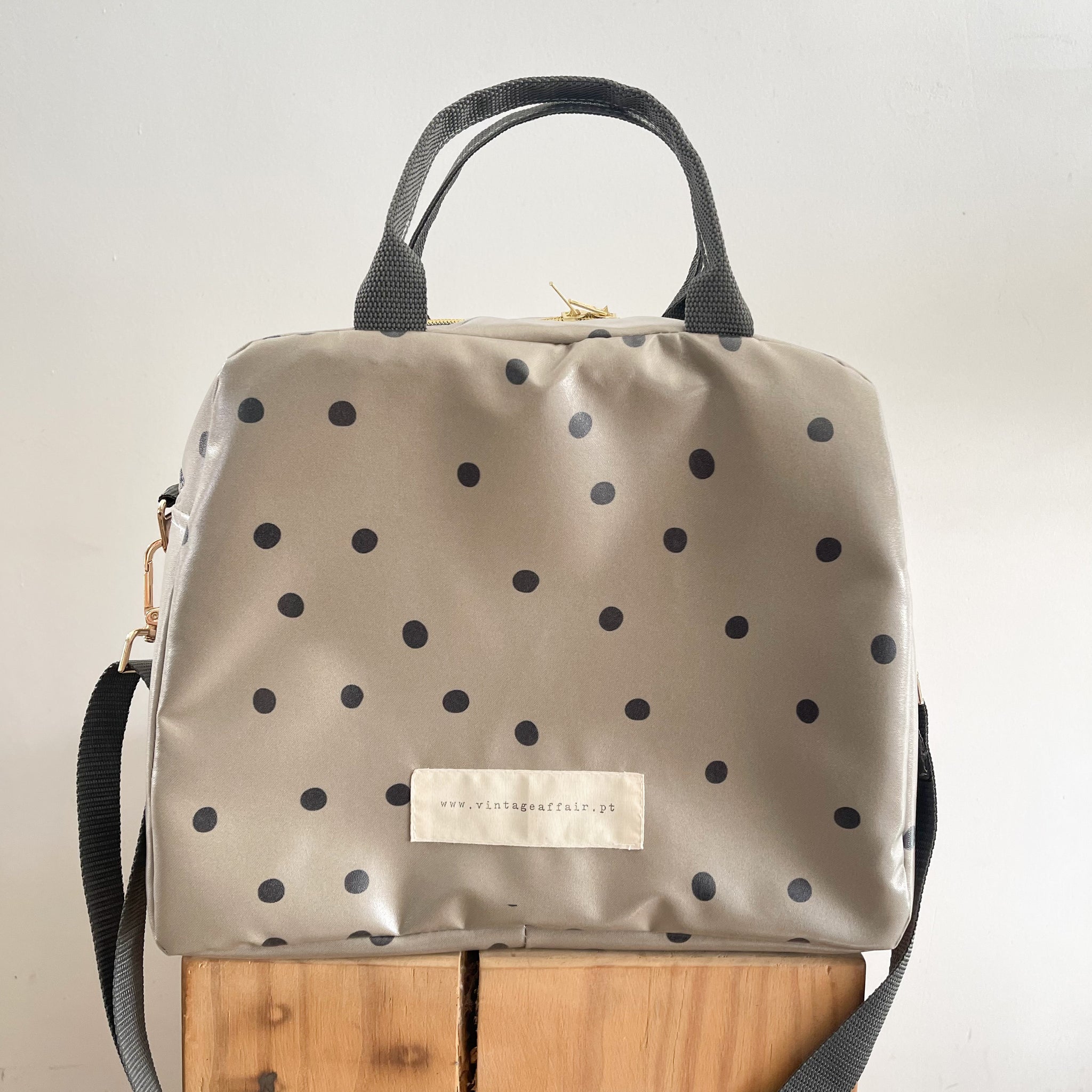 Lancheira em tecido plastificado no exterior e revestimento isotérmico no interior. Mantém a comida quentinha ou fresca por mais tempo.