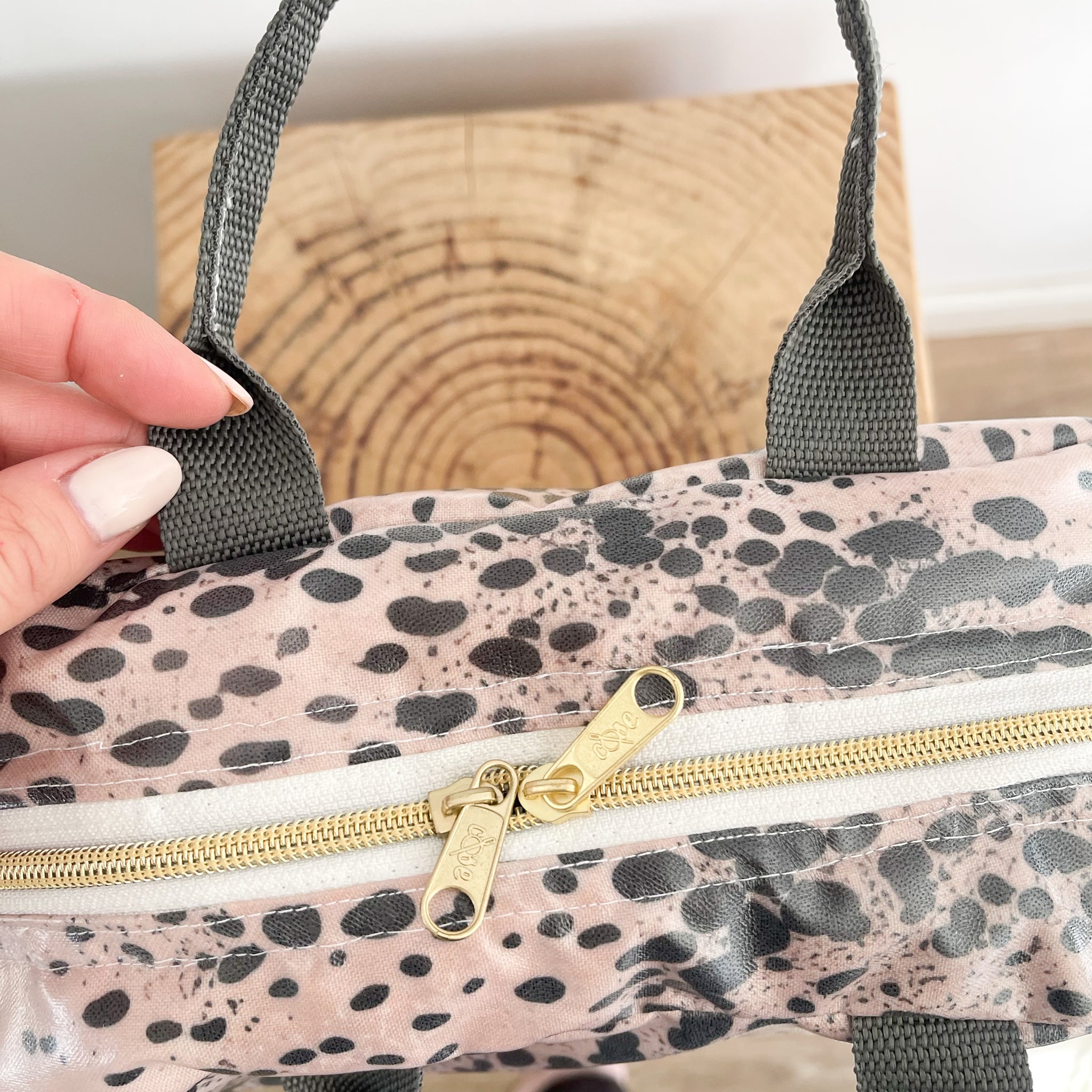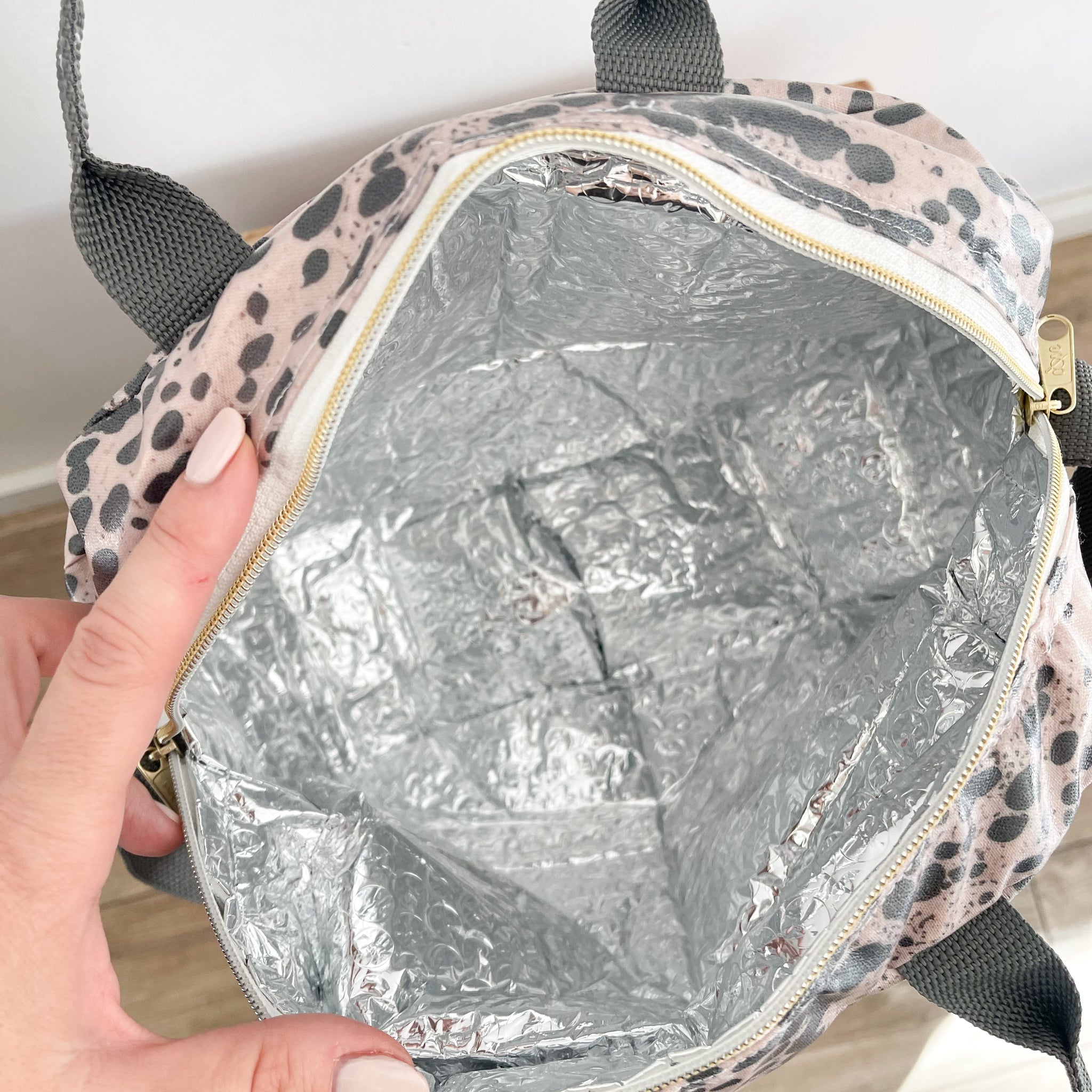 Lancheira em tecido plastificado no exterior e revestimento isotérmico no interior. Mantém a comida quentinha ou fresca por mais tempo.