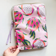 Capa para tablet almofadada. Exterior em tecido plastificado, forro em tecido e interior em almofadado.