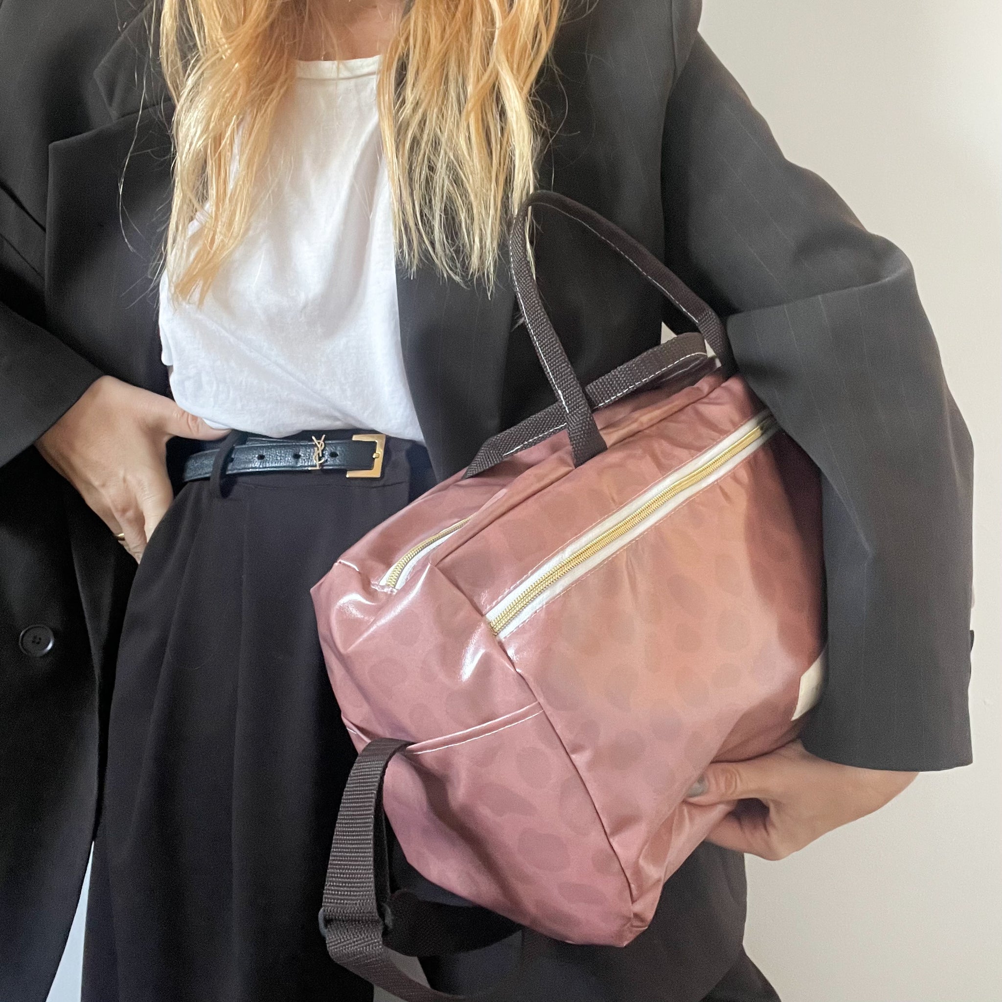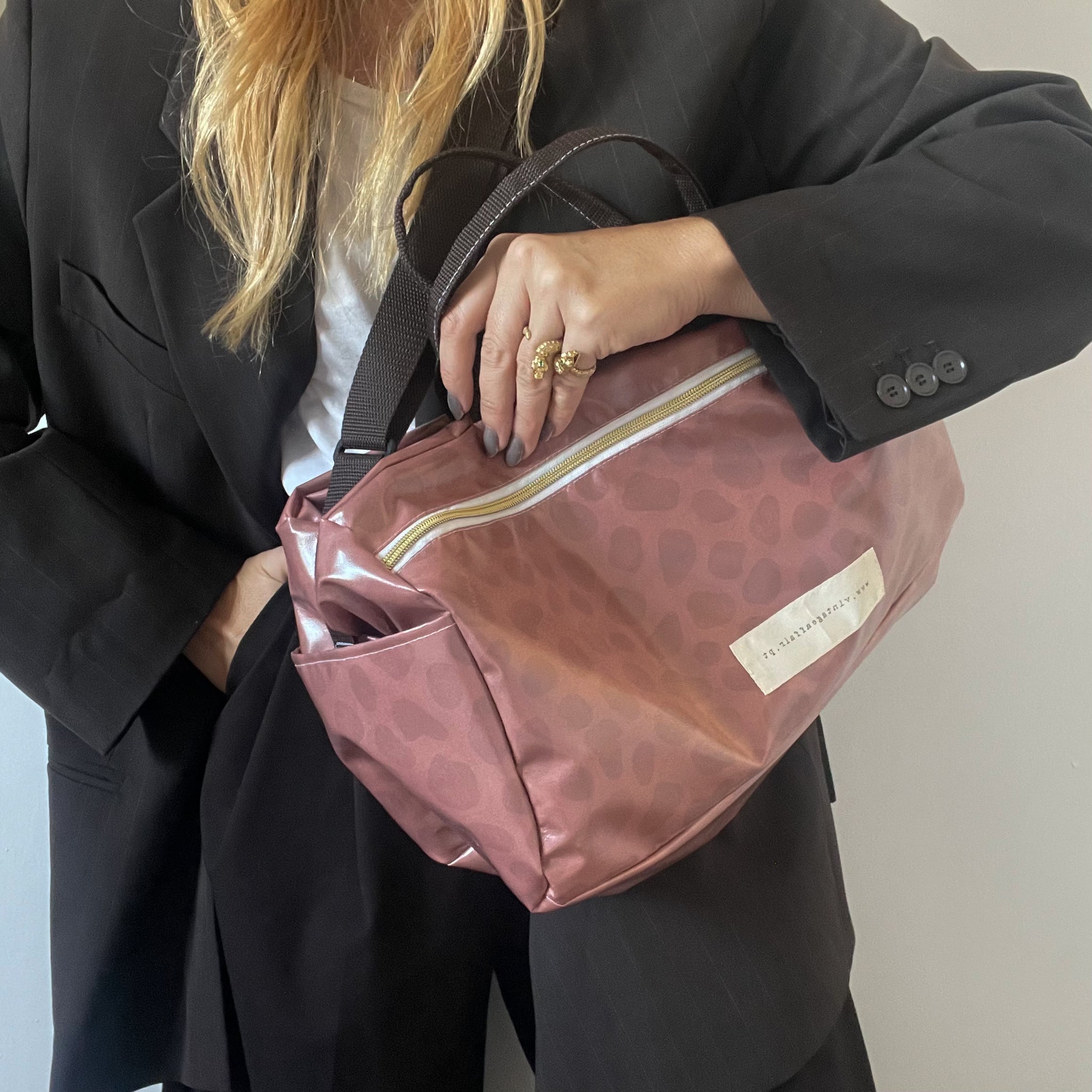 Saco de desporto em tecido plastificado no exterior e tela plastificada no interior